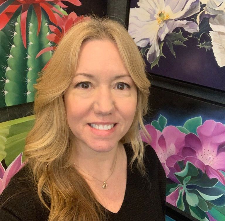 Her current series includes colorful botanical paintings of cactus flowers and other beautiful native plants. She hopes the paintings of botanicals, desert blooms and tropical flowers inspire others to experience the joy that comes from the natural beauty that is all around us. Erynn’s collectors say the vibrant colors gives them energy, enriches their homes, and gives them much joy that they love to share with their friends and families. “I just love seeing people light up when they see my work. I’m usually the brightest booth at the show, and proud of it!”